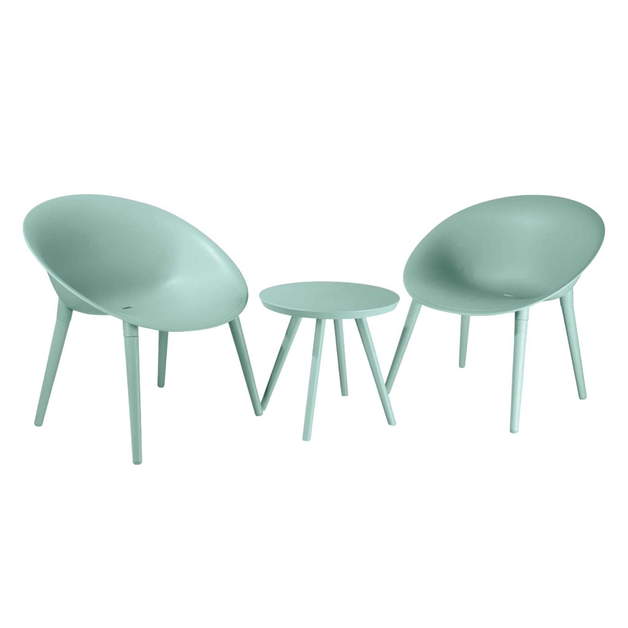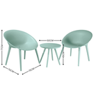 Crafted for your outdoor enjoyment, the Patio Setting 3 piece Soho Eucalyptus Green is a perfect addition to any patio or garden space. The set features a sleek table and two chairs, each designed with a contemporary eucalyptus aesthetic that blends seamlessly with your natural environment. The robust plastic construction ensures durability against the elements, allowing for year-round use. The table measures 50 cm in both length and width, offering ample space for dining or relaxing. Coupled with chairs styled in a complementary eucalyptus colour, this three-piece set is both functional and stylish. It's a practical choice for those who appreciate outdoor living and want a set that combines both comfort and sophistication.