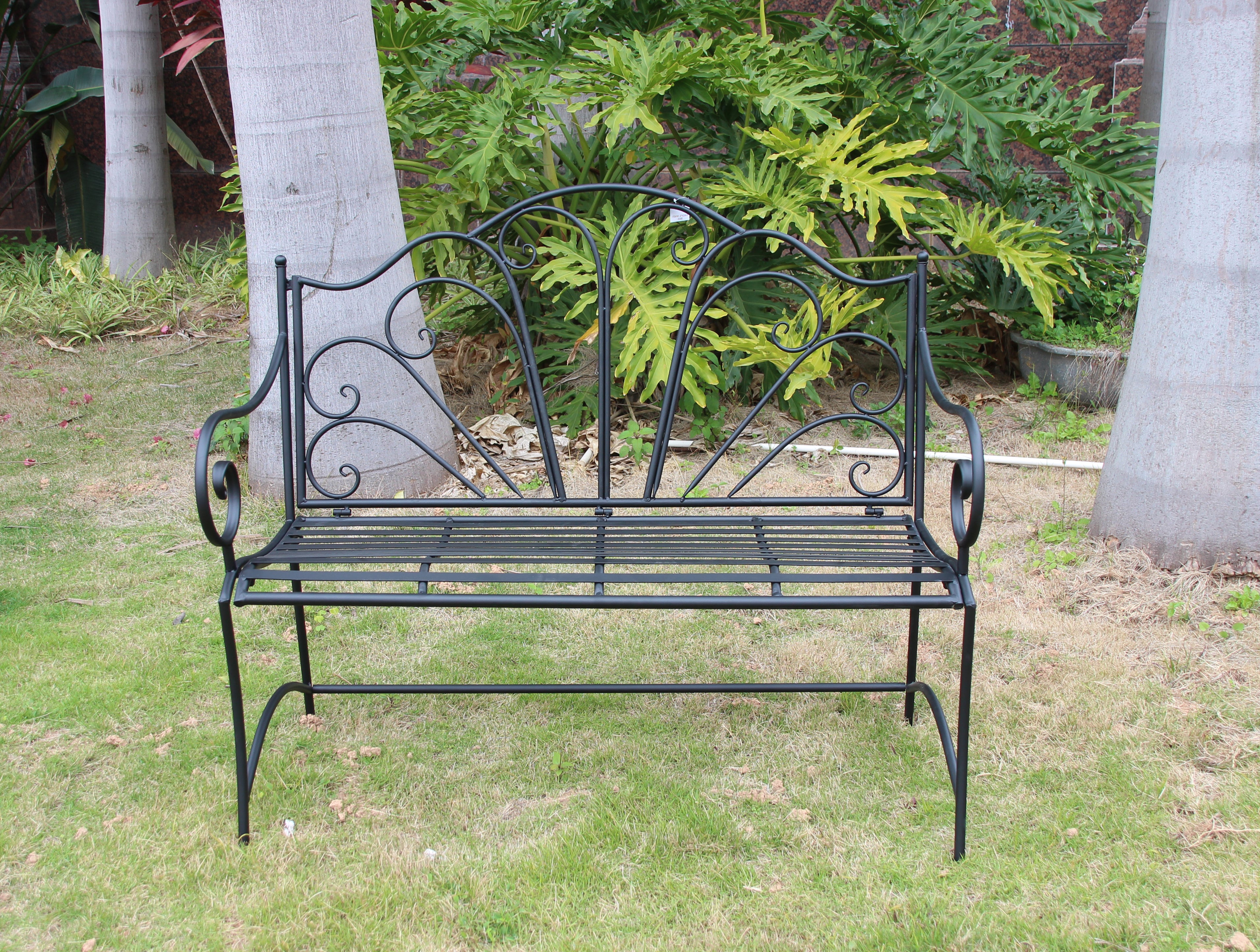 Garden Bench Seat Black Steel Metal Outdoor Park