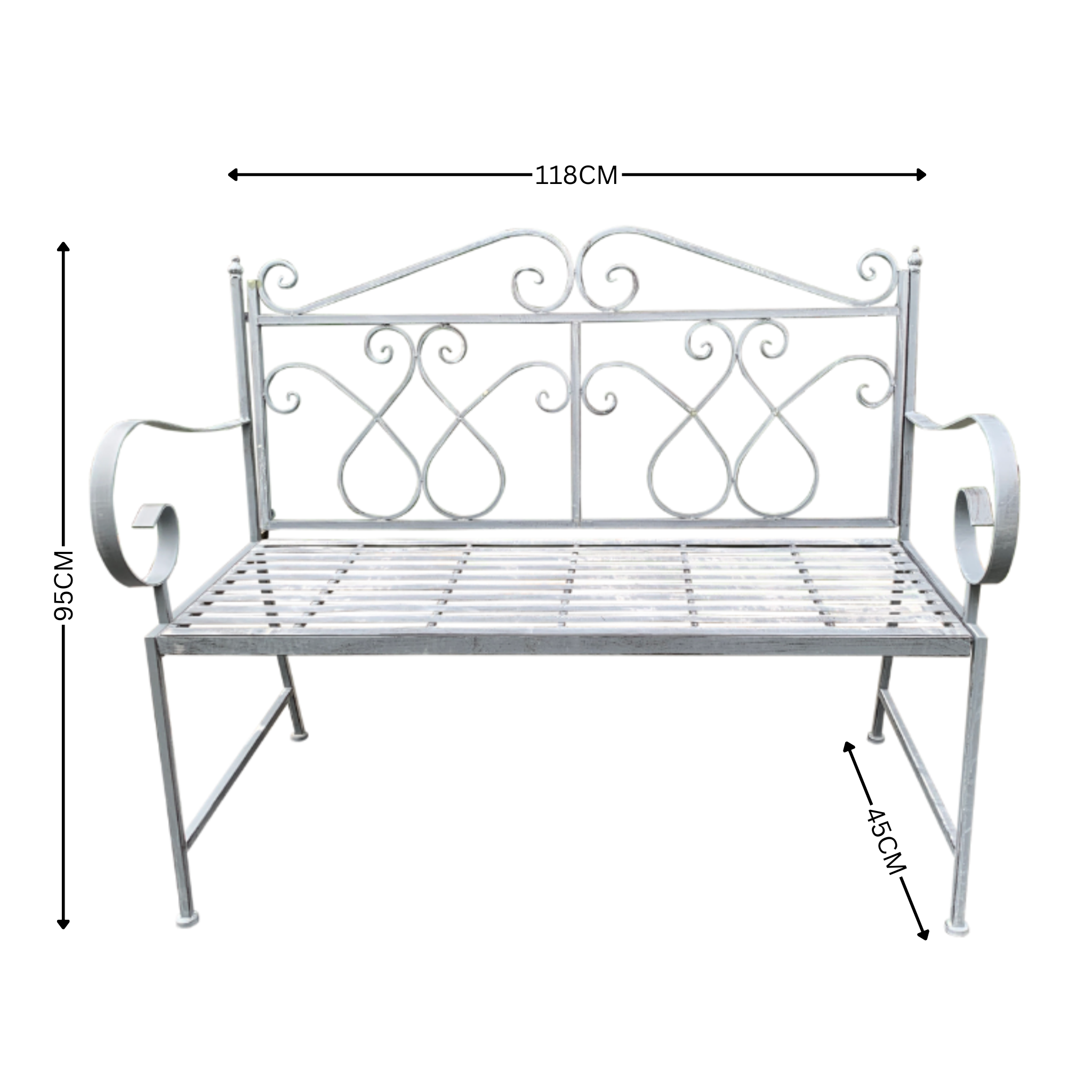 Garden Bench Metal Seat, Zara, White Wash Grey