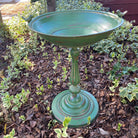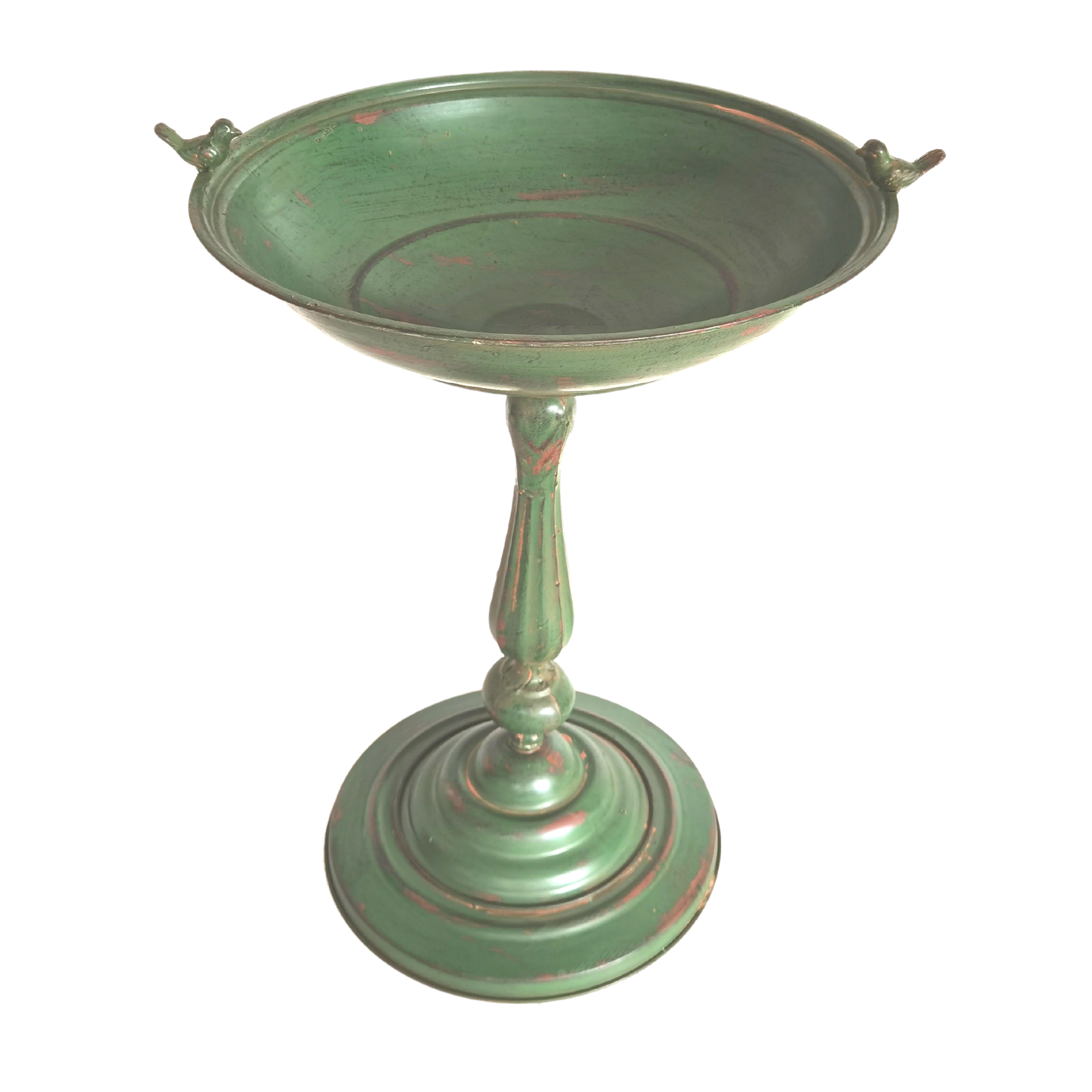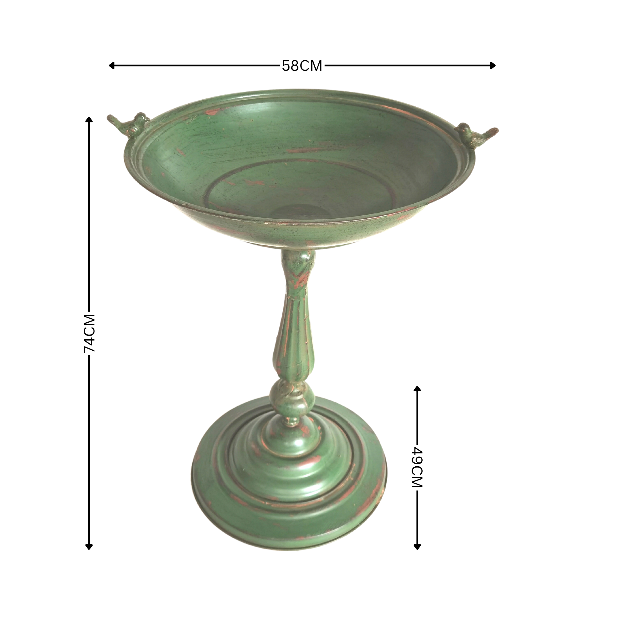 Birdbath/ Birdfeeder Metal Extra Large with Birds Décor in Antique Rustic Green