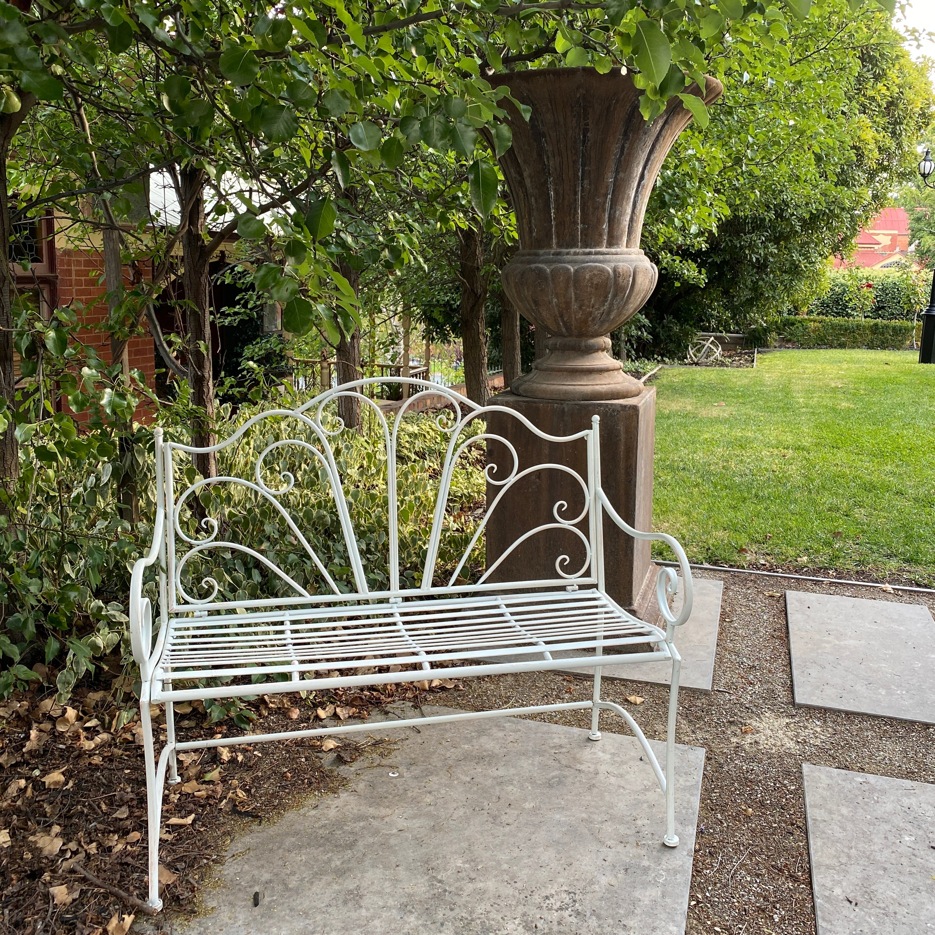 Garden Bench Metal Seat, Ava, Distressed Cream