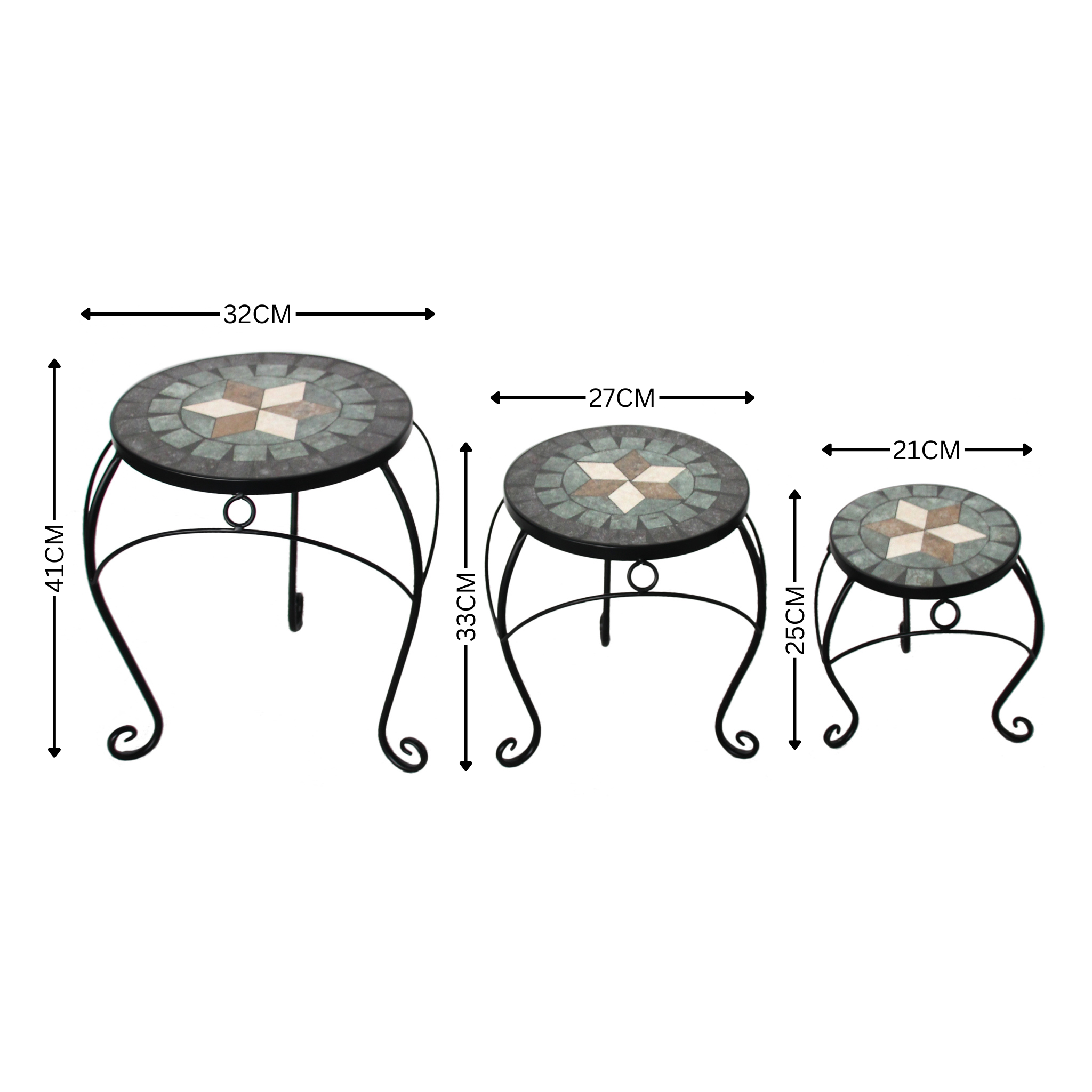 Complete the setting with matching mosaic 3 piece patio setting (MONDON pictured) and versatile set of 3 mosaic side tables (JF201649N pictured)