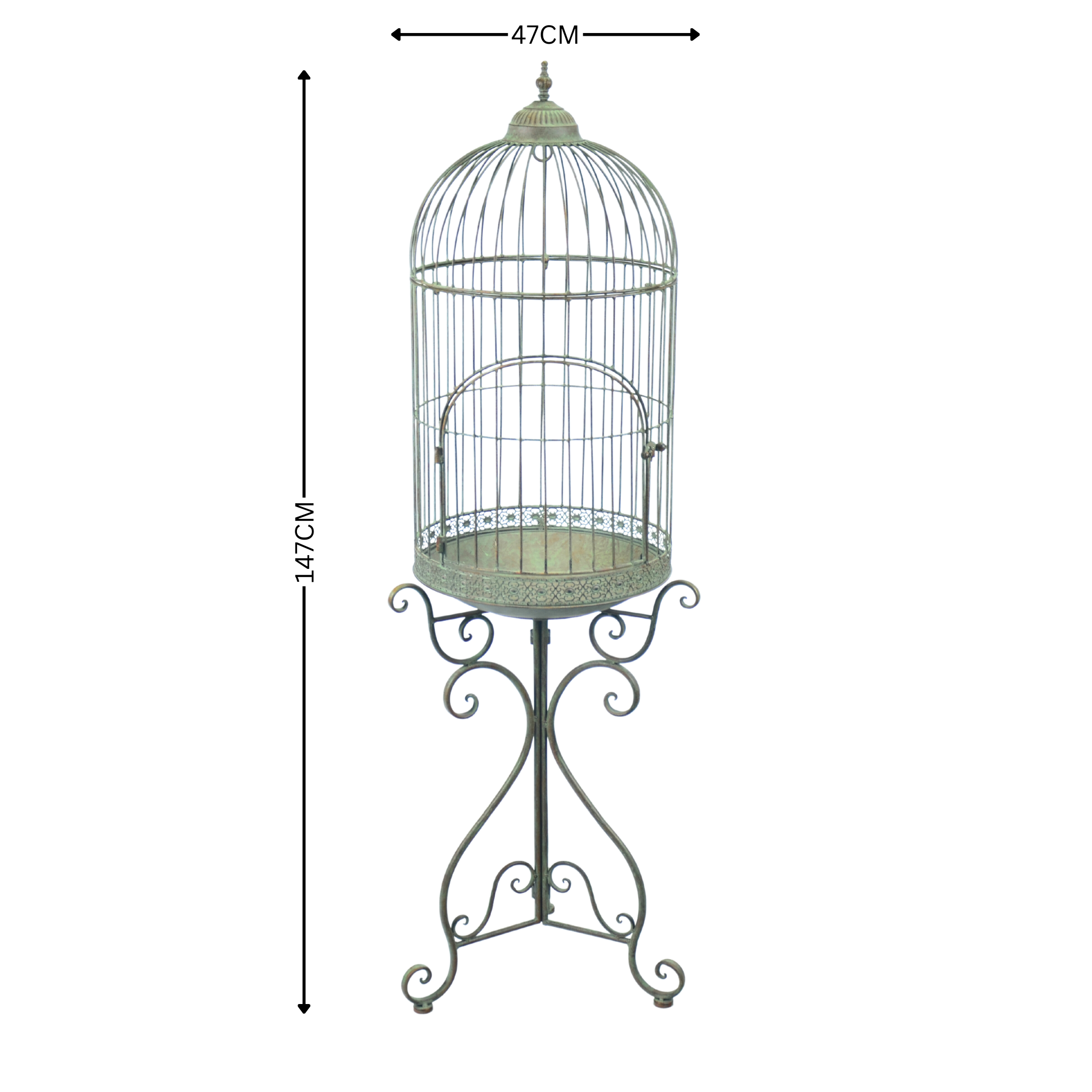 Bird Cage on Stand Rustic Antique Green 47x47x147 cms