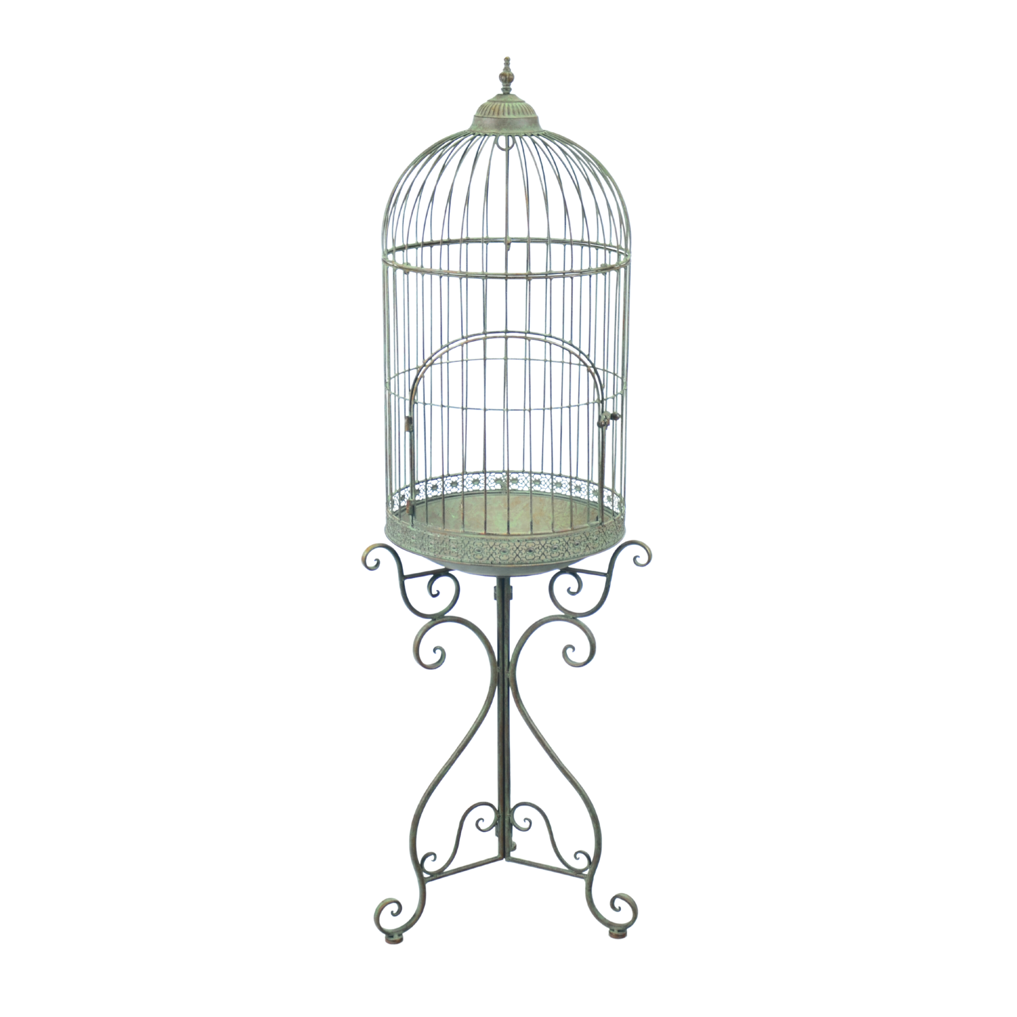 Large Metal Birdcage Plant Holder Stand Display Ornamental in Antique Green finish