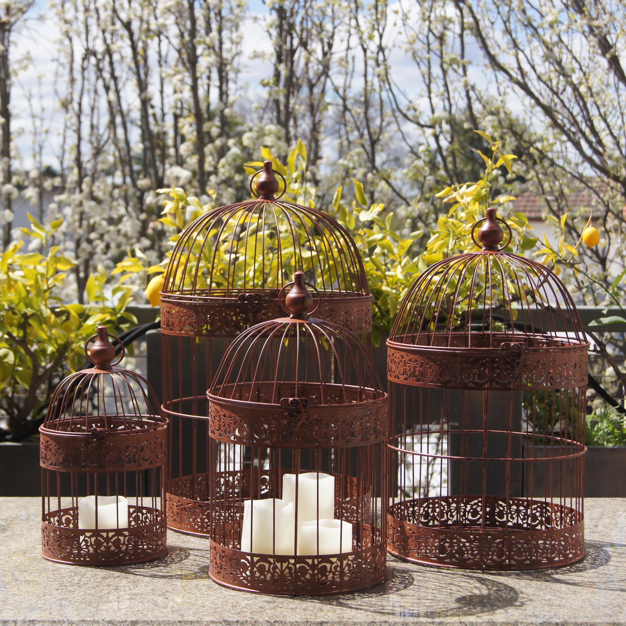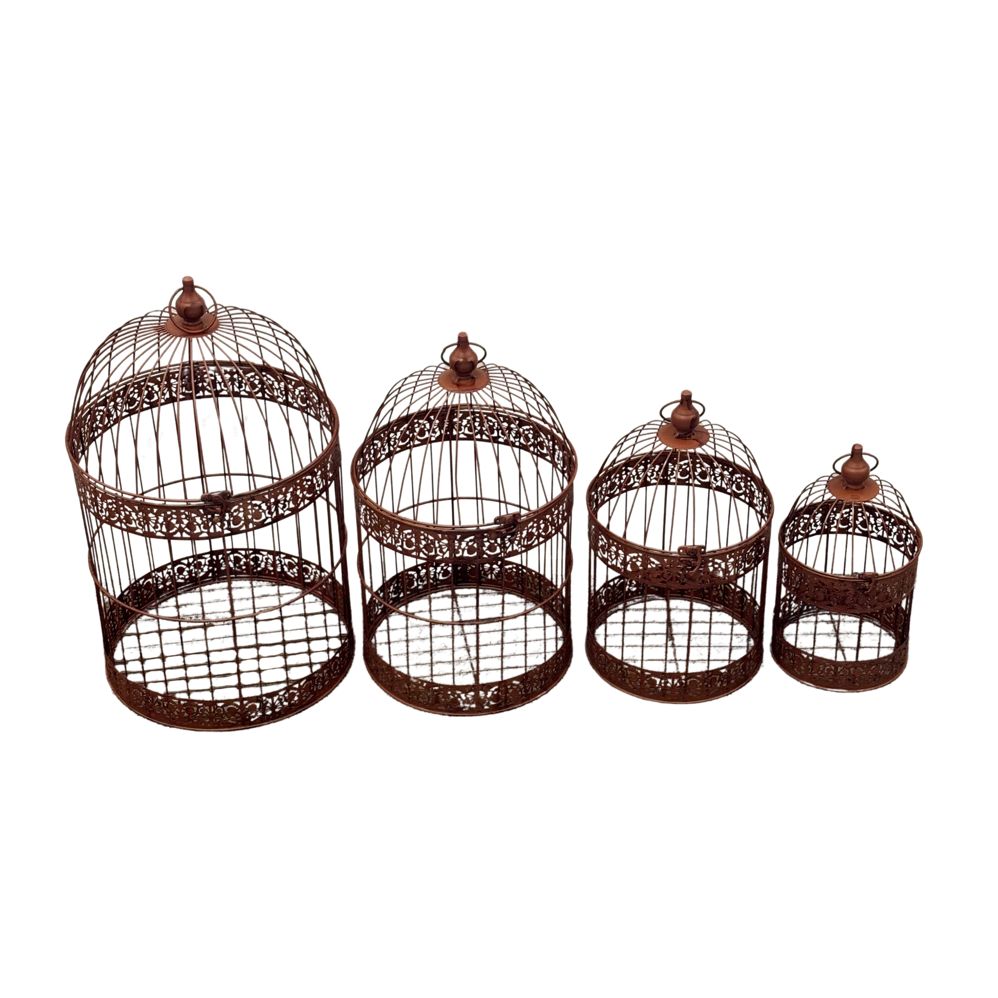 This beautiful set of birdcages are a must for any outdoor entertaining space, hang under a tree or of course indoor. Load these beautiful cages up with your imagination, a plant, candles, seasonal decorations, floral displays, bud lights, use them for wedding decorations or gift envelopes. The set of 4 gives you 4 times the opportunity to create a stylish, elegant and fun entertaining opportunity for any occasion.