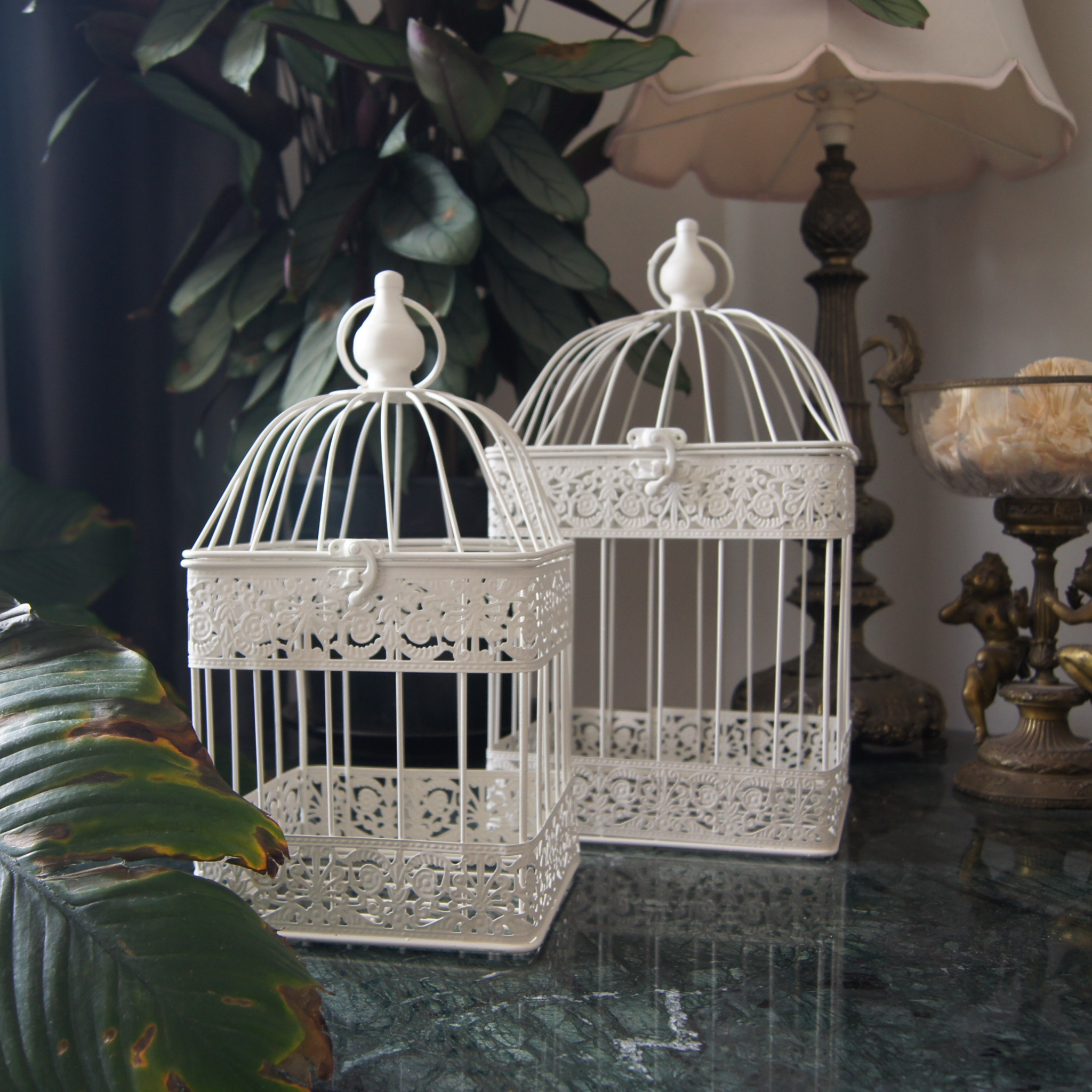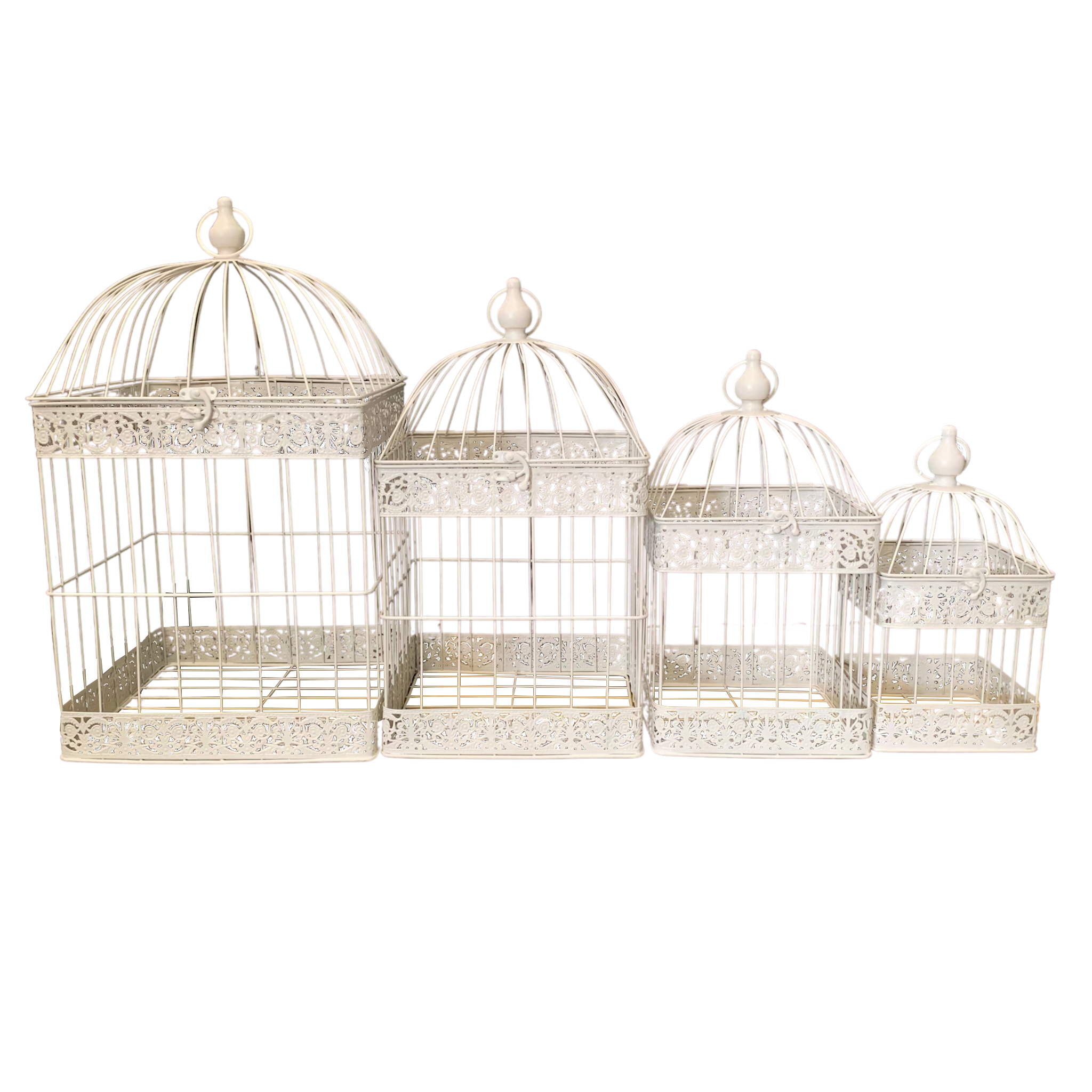 This beautiful set of birdcages are a must for any outdoor entertaining space, hang under a tree or of course indoor. Load these beautiful cages up with your imagination, a plant, candles, seasonal decorations, floral displays, bud lights, use them for wedding decorations or gift envelopes. The set of 4 gives you 4 times the opportunity to create a stylish, elegant and fun entertaining opportunity for any occasion.