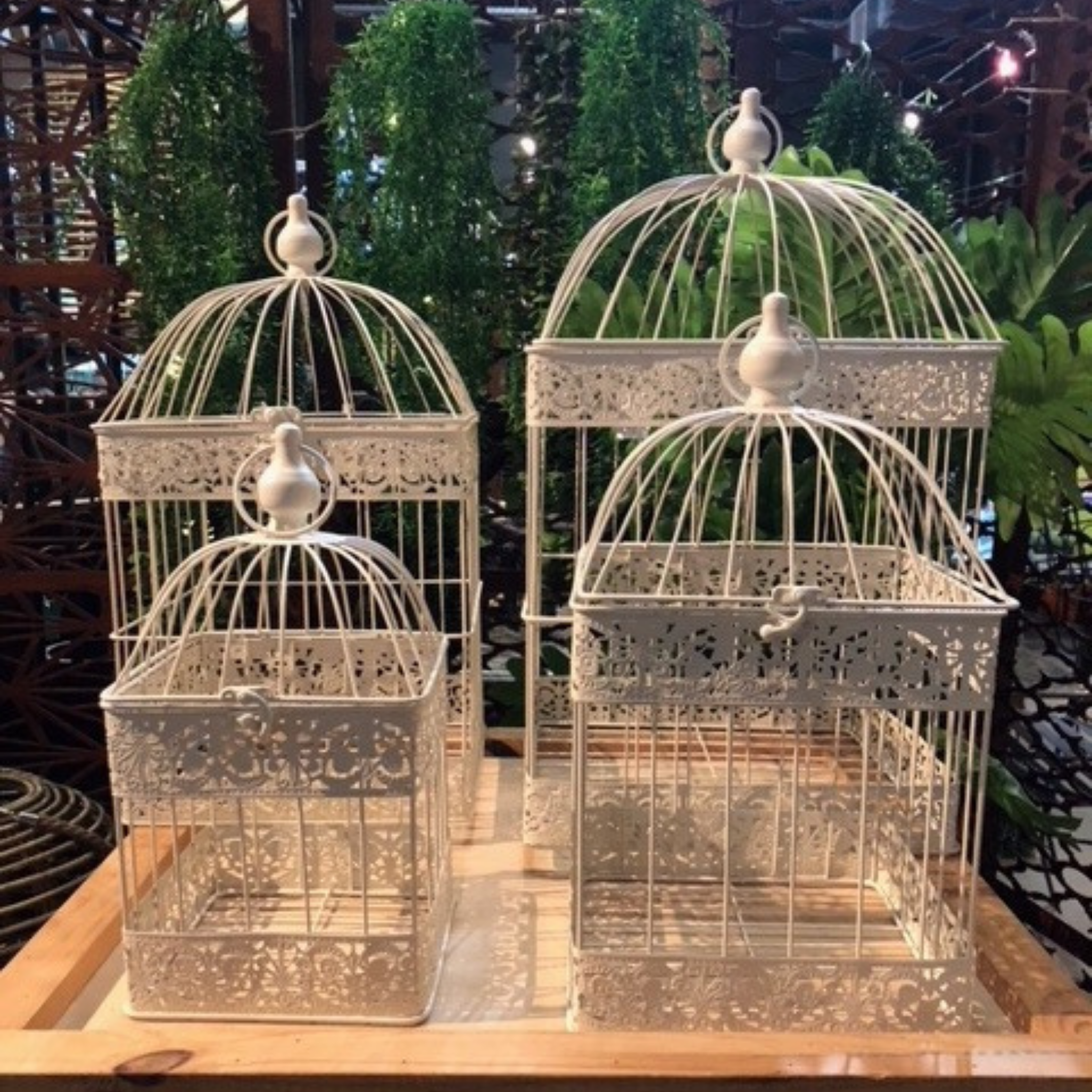 Bird Cages Square Set 4 Cream Hanging Metal Steel Wedding Flower Plant Holder Garden Decor