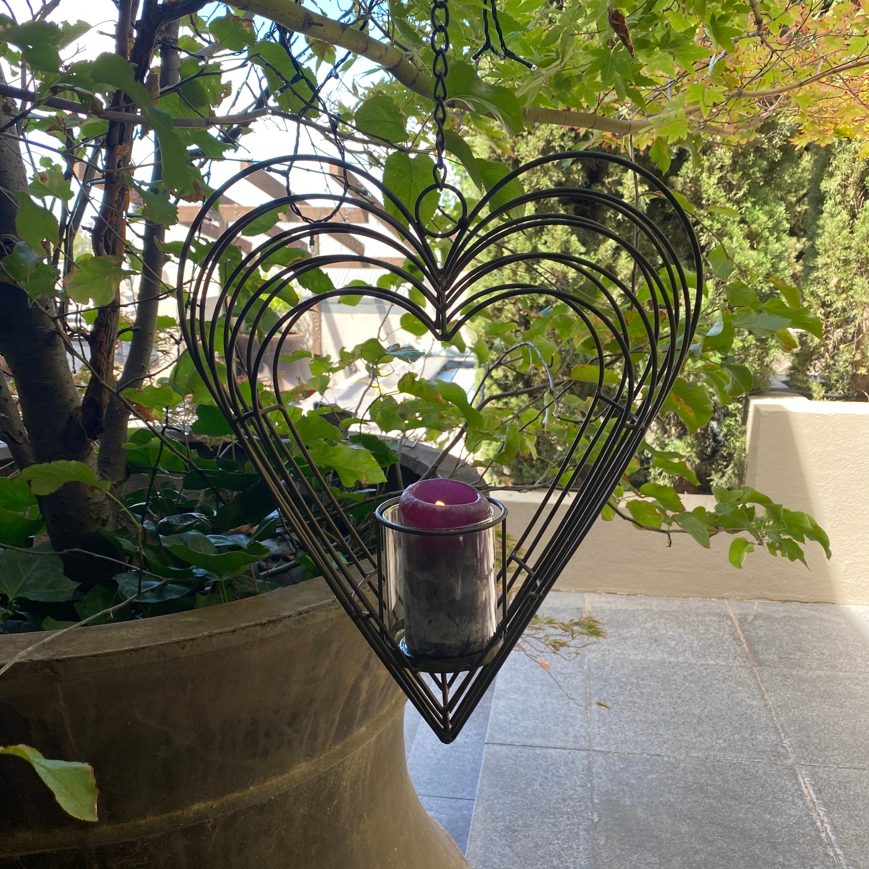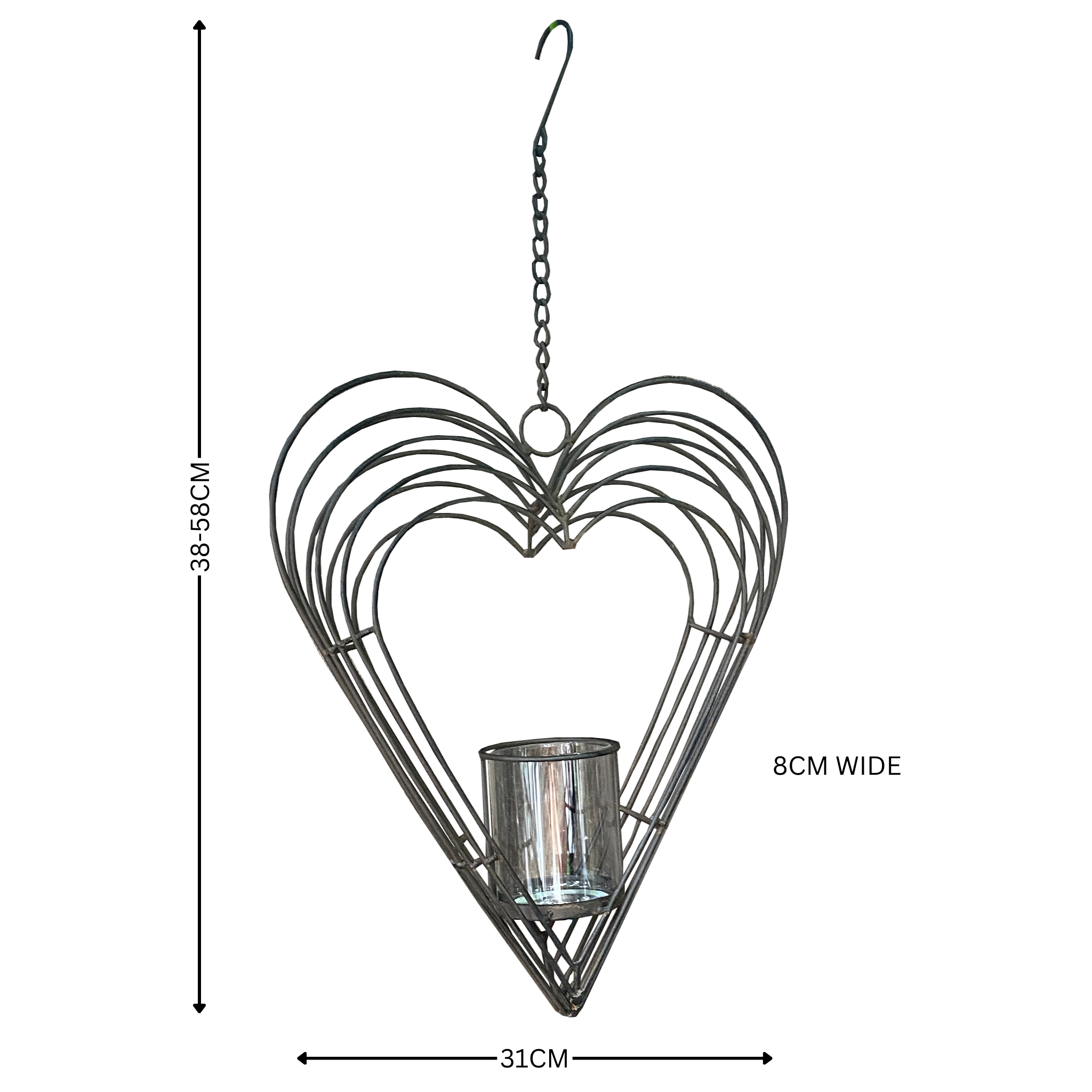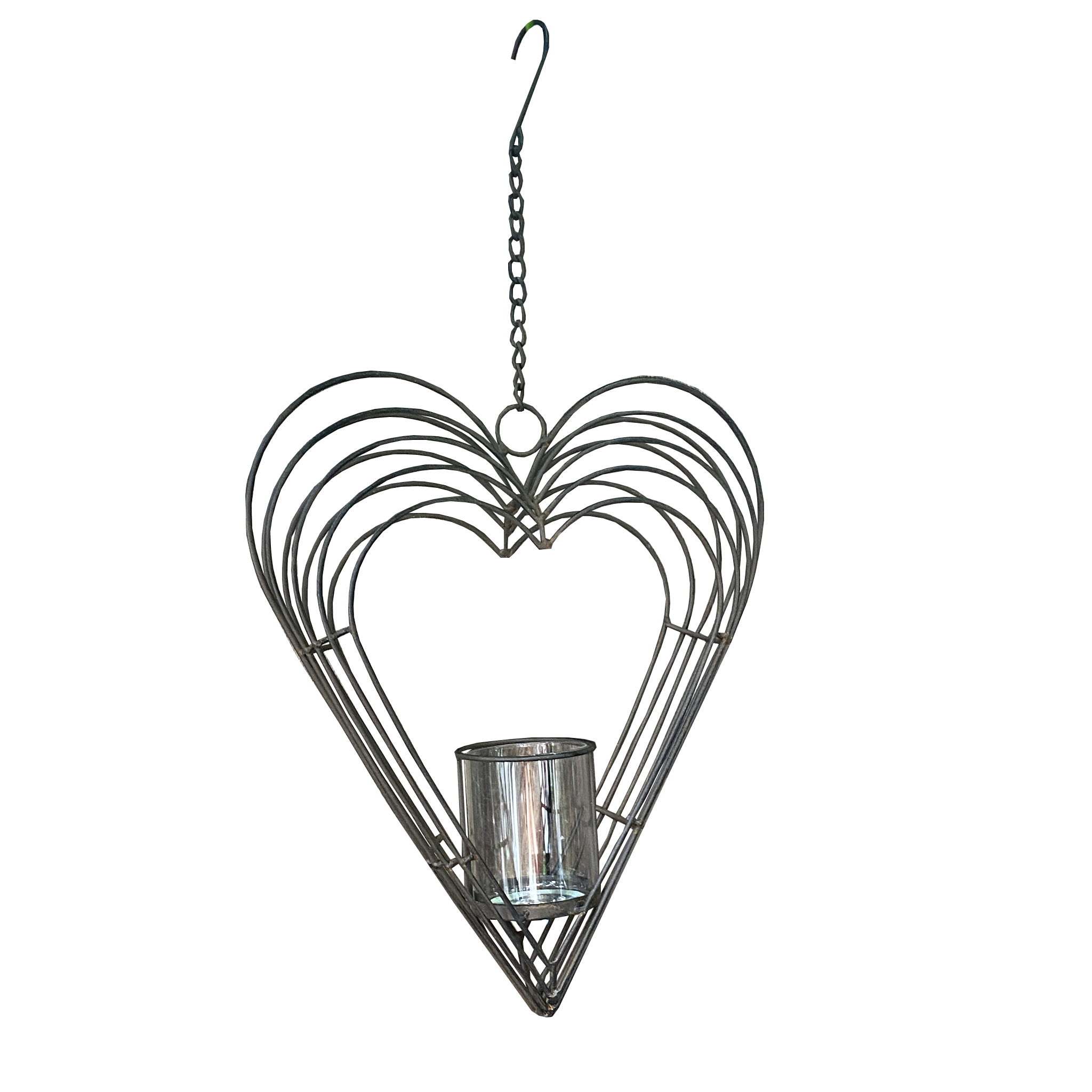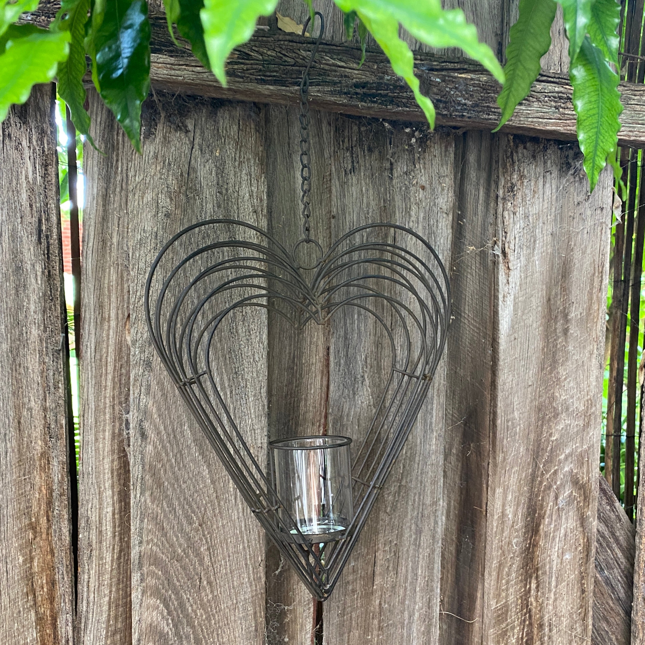 Candle Holder. Hanging heart candle holder. Add this beautiful candle holder to light up your space indoor or outdoor. This piece also looks amazing in a group of three of more hung at different lengths.