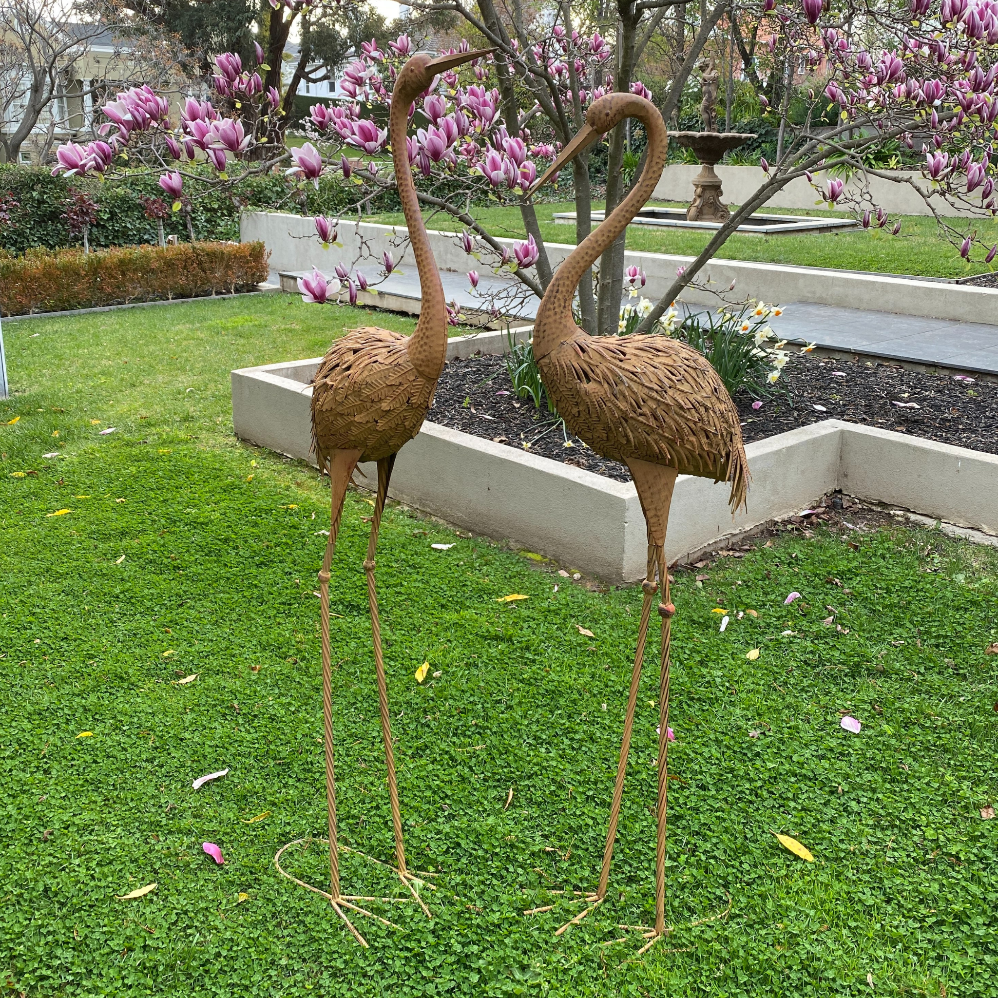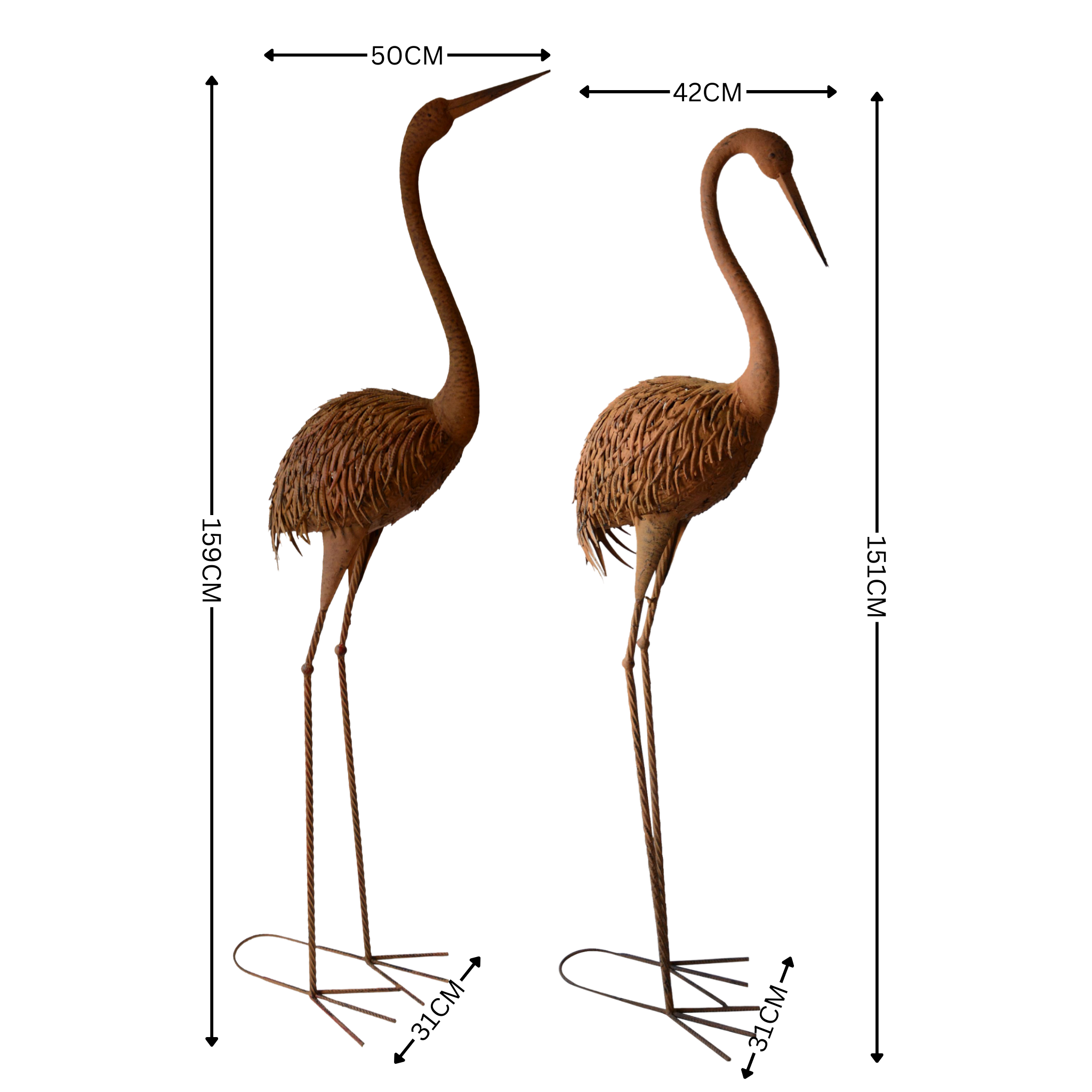 SET 2 Metal Cranes. These magnificent creatures will look fantastic in your garden for a focal point to draw your attention, around a pond standing tall or in a secluded nook for a surprise. These fellows are sure to create a statement. Some say the crane is a symbol of long life and Japanese folklore believe the crane can live for 1000 years and is a symbol of happiness, good luck and peace. For added impact match it with one of our other cranes for a trio made in heaven.