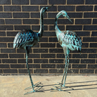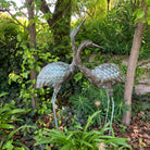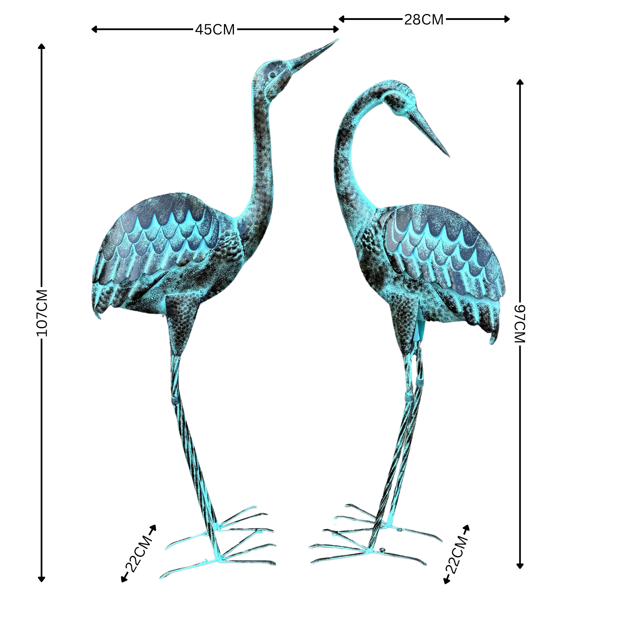 SET of 2 Metal Cranes in Verdi finish. These magnificent creatures will look fantastic in your garden for a focal point to draw your attention, around a pond standing tall or in a secluded nook for a surprise. Some say the crane is a symbol of long life and Japanese folklore believe the crane can live for 1000 years and is a symbol of happiness, good luck and peace.
