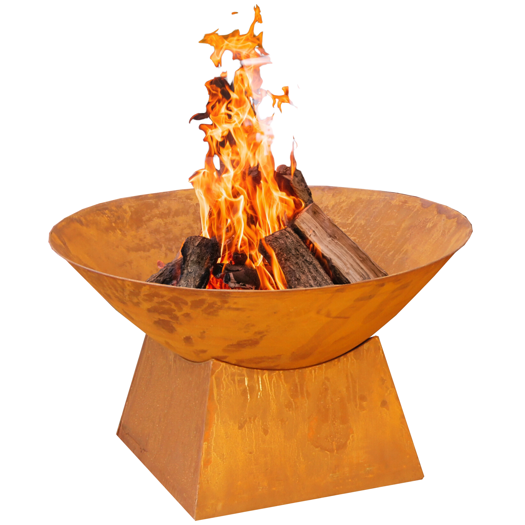 Free Standing Outdoor Fire Pit Bowl and Plain Base, Rustic Metal