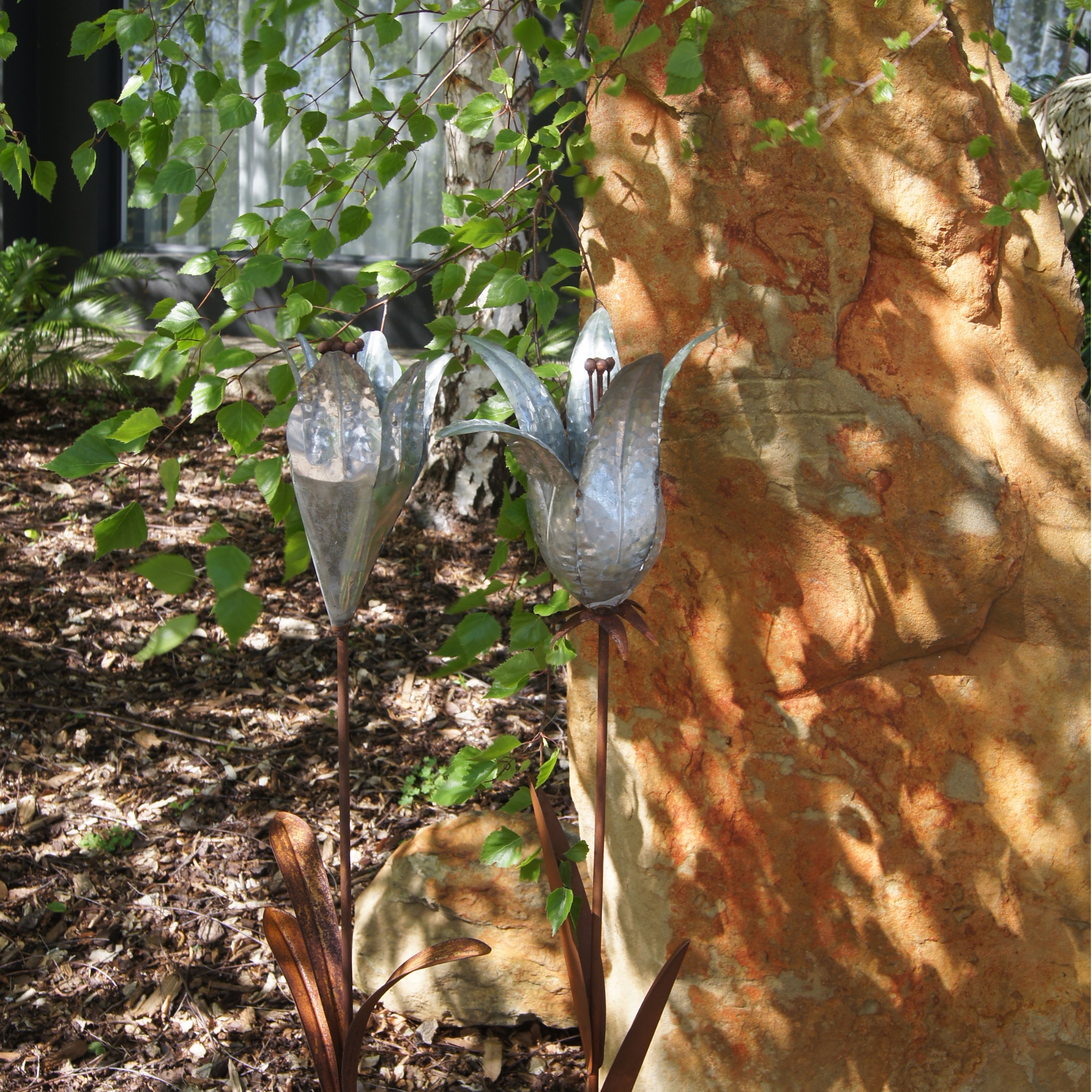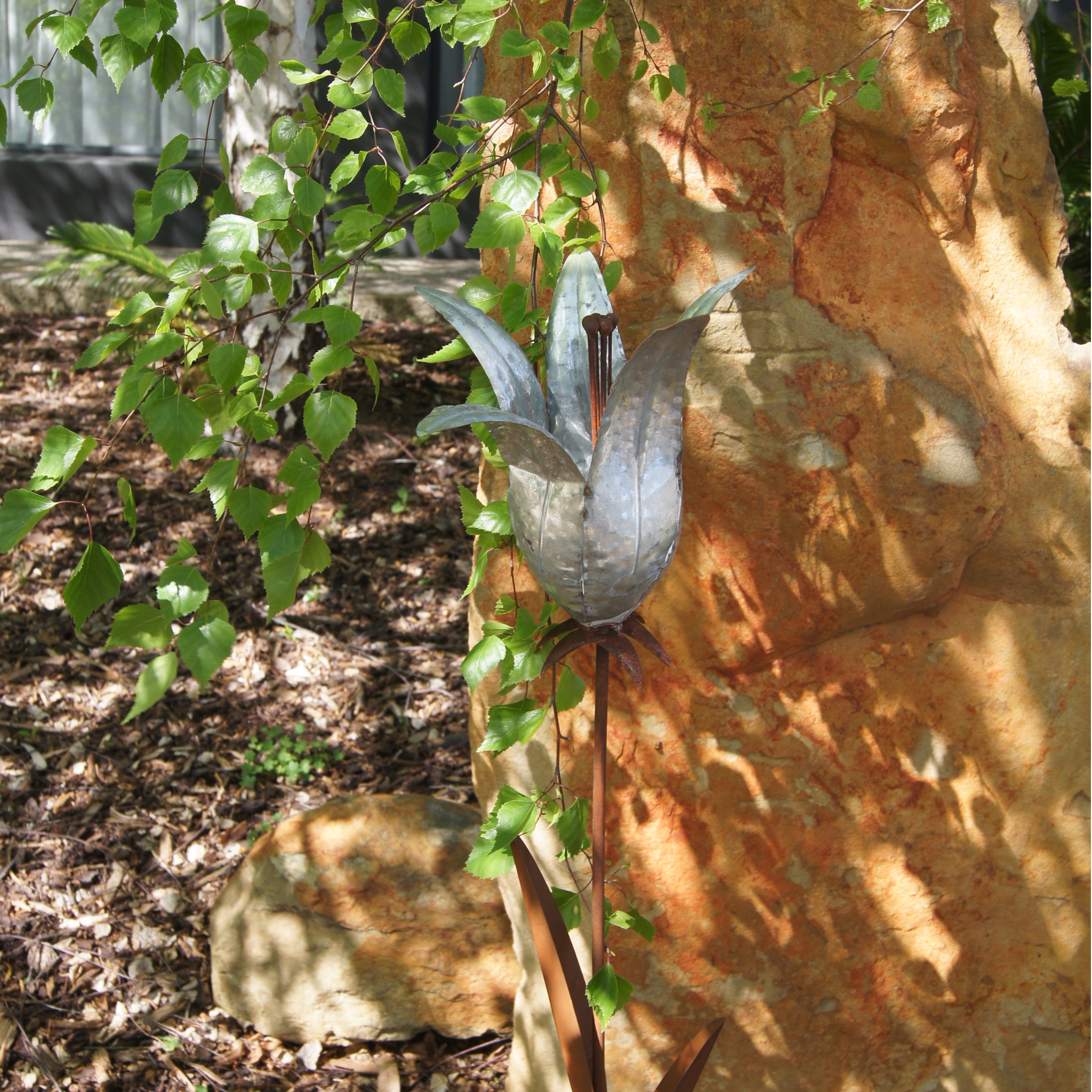 Metal Flower Trumpet Lily Sculpture Garden stake. Garden décor