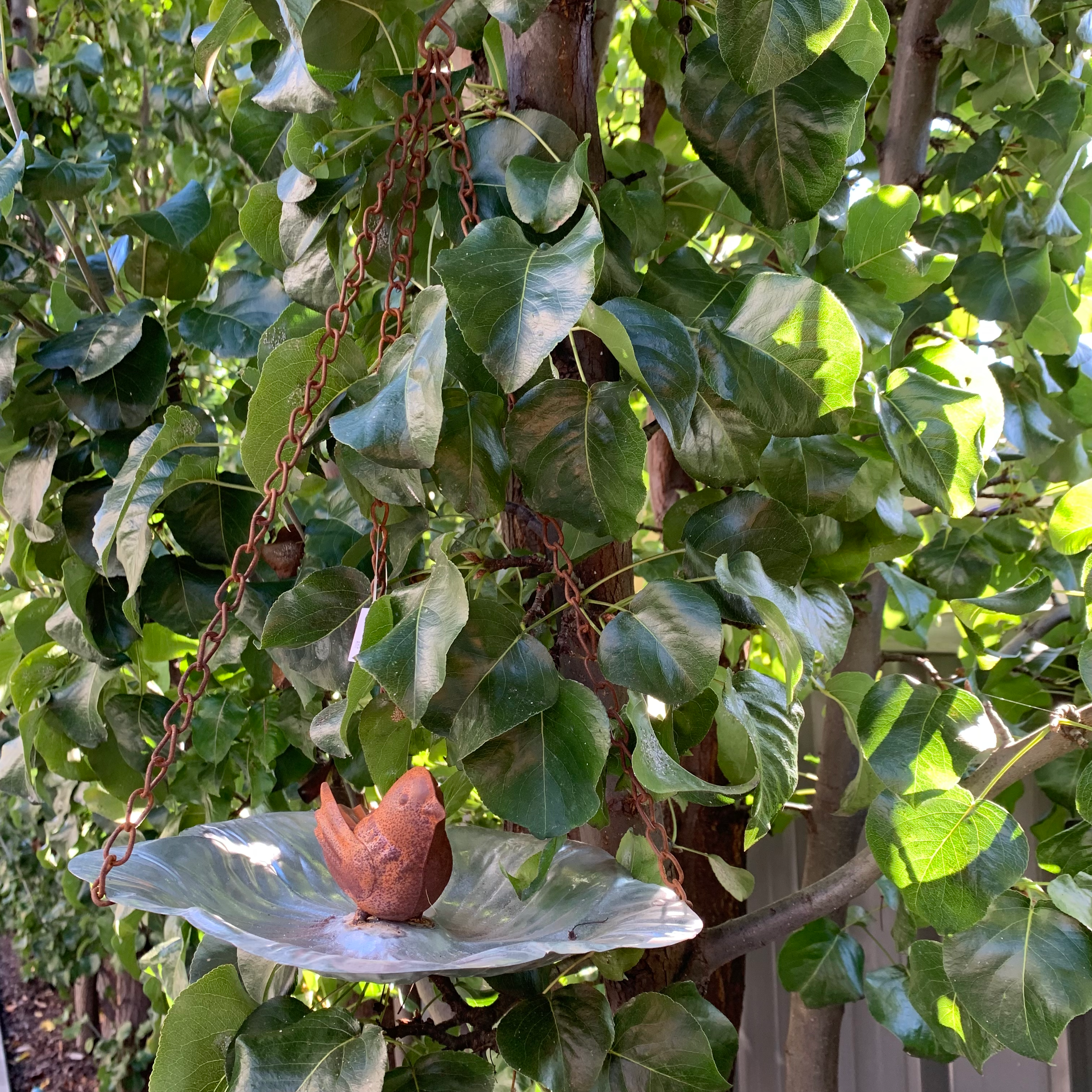 This Metal ornate eye catching Hanging bird feeder with bird is the perfect piece to attract Australian native wild birds to your garden. Your feathered friends will love you for it! With rust chain and bird and silver petal this piece will be a stand out anywhere you choose to hang it.