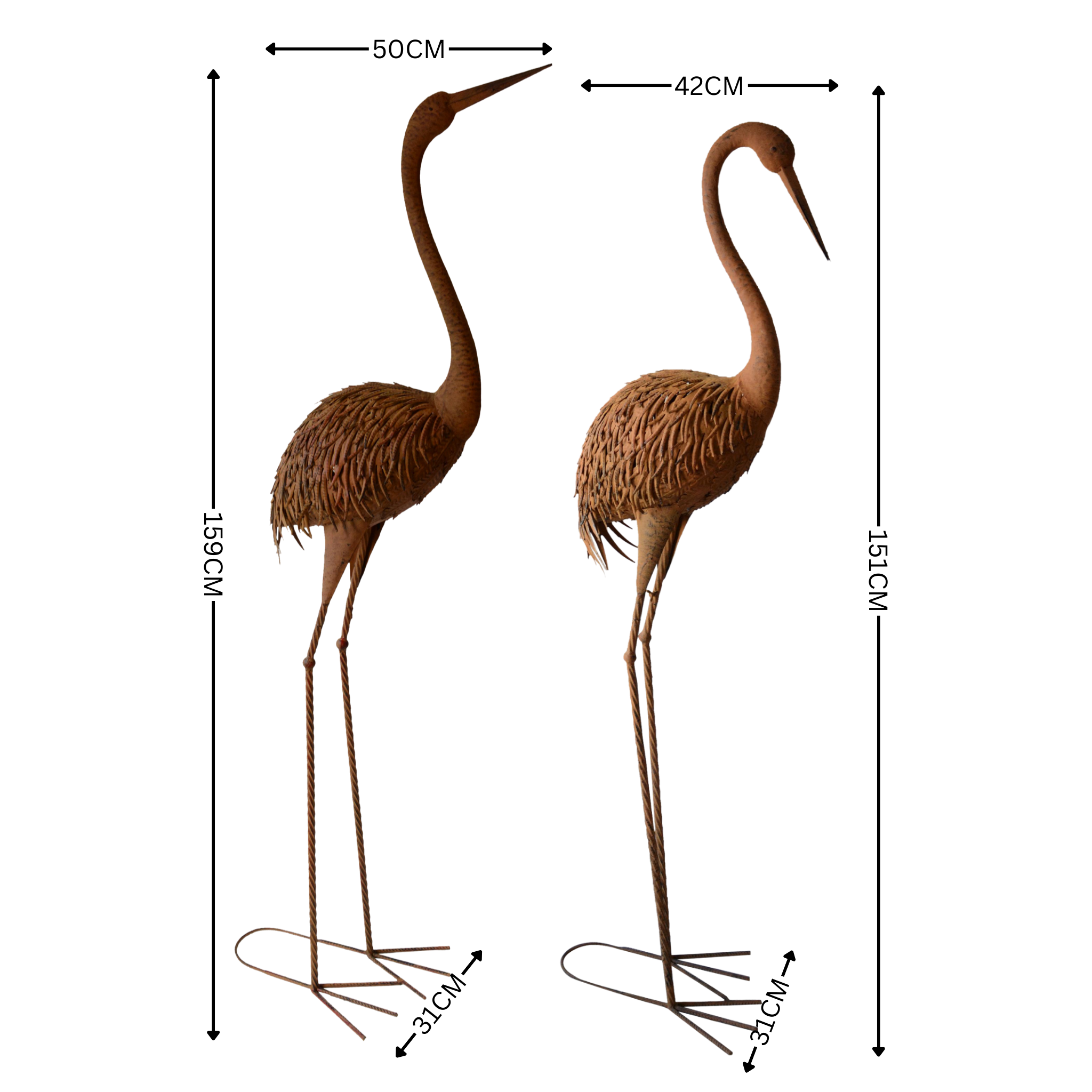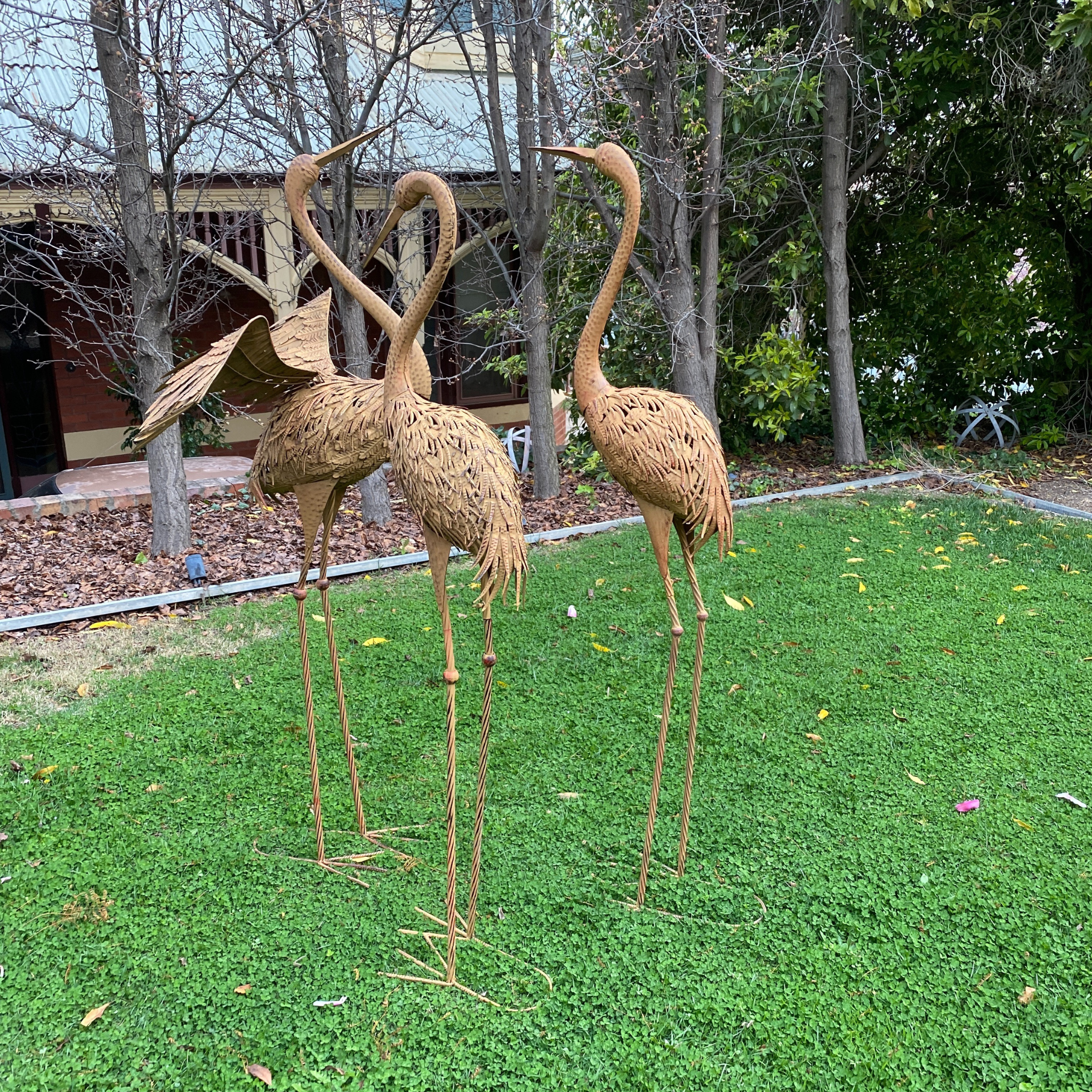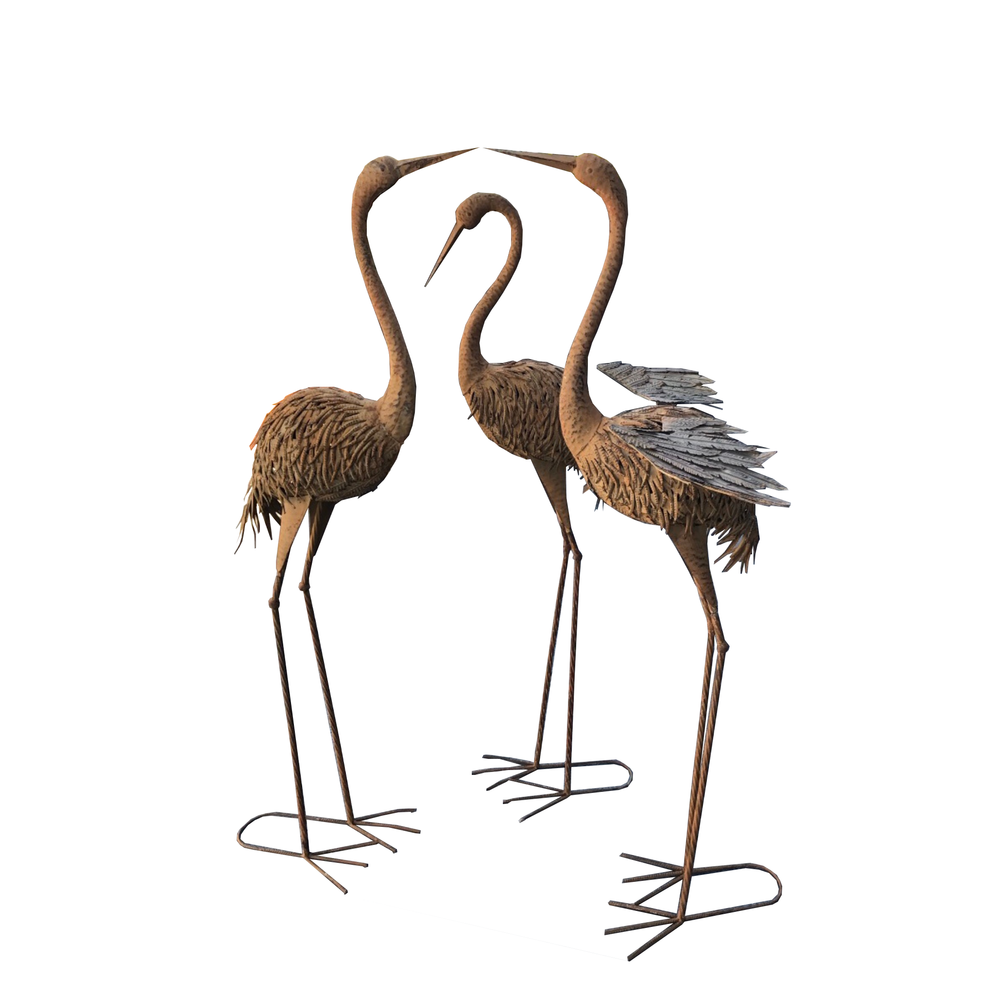 SET of 3, Outdoor Metal Cranes Head Up, Down & with Wings Garden Statue