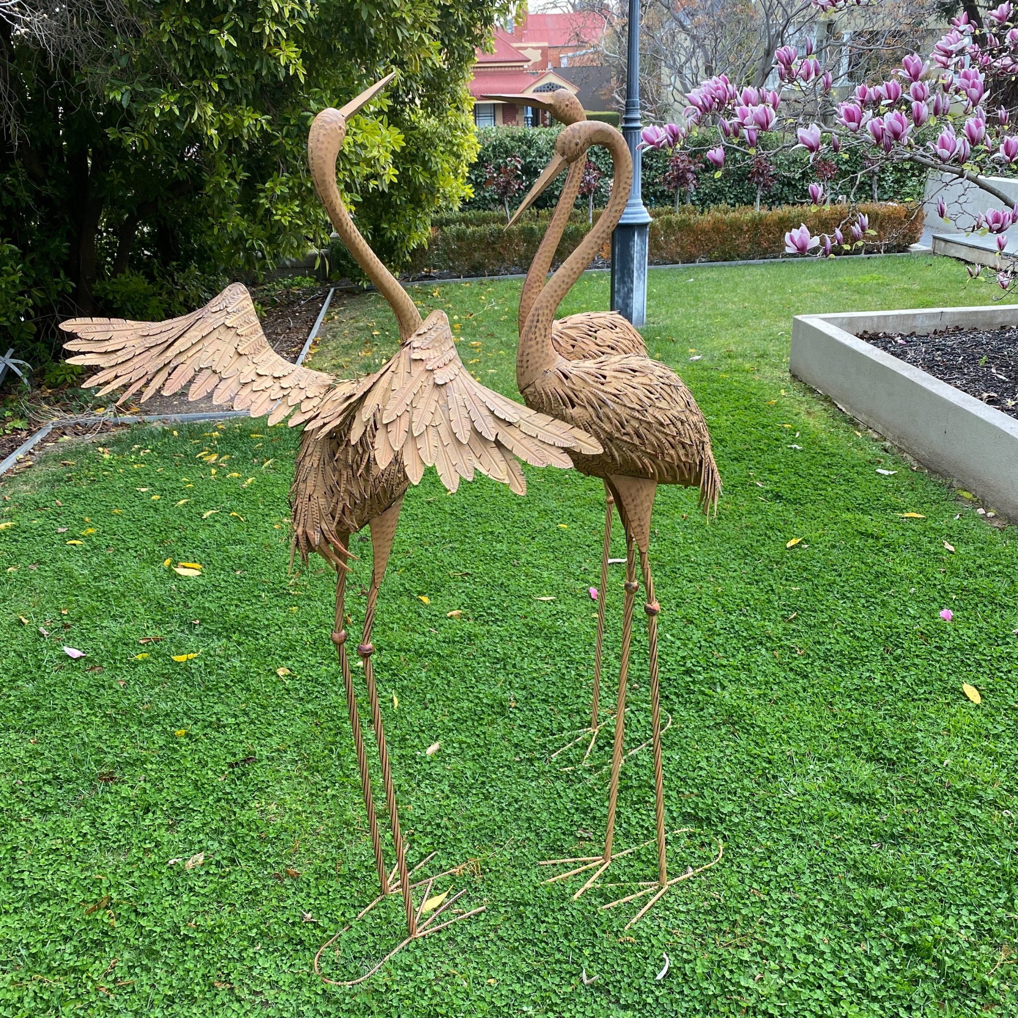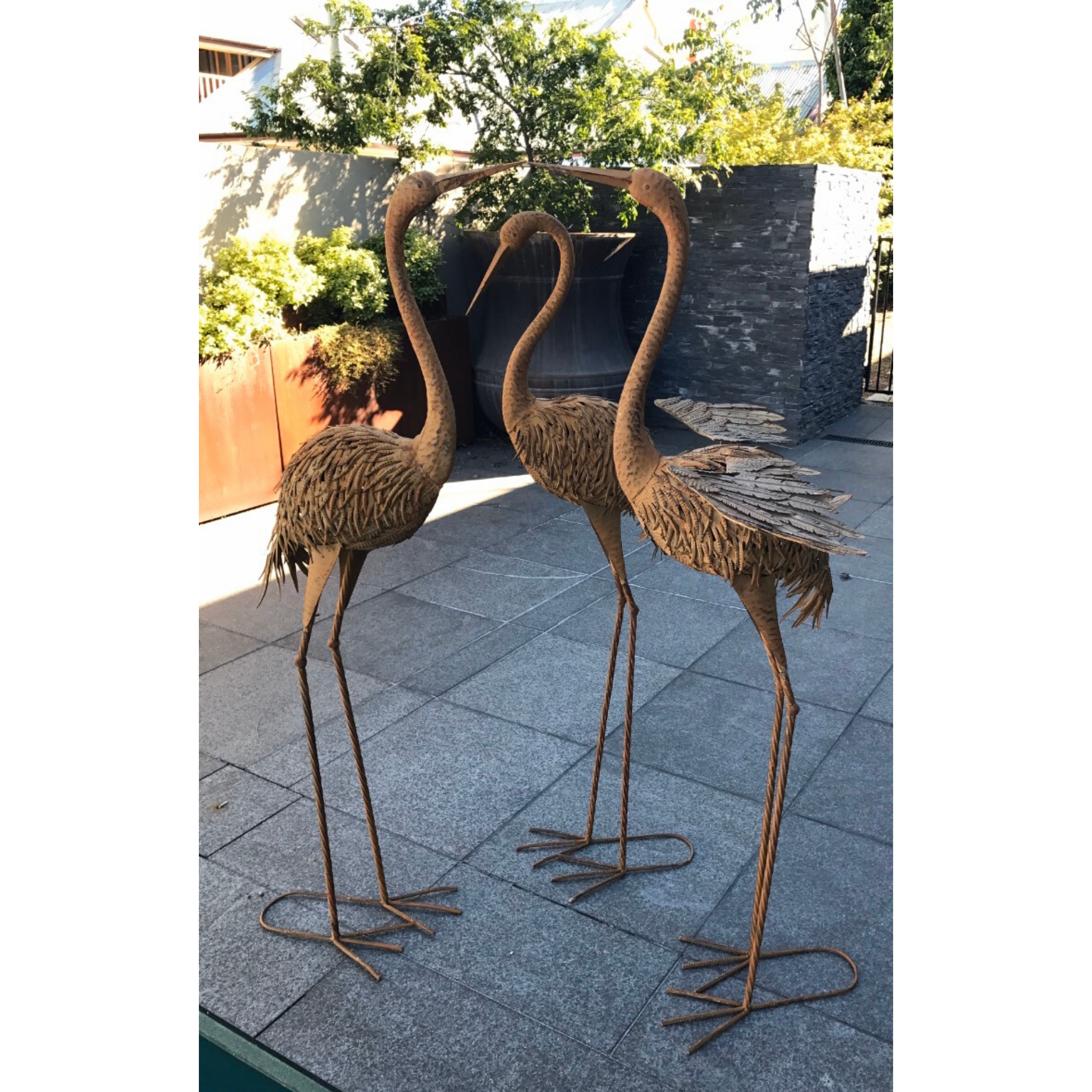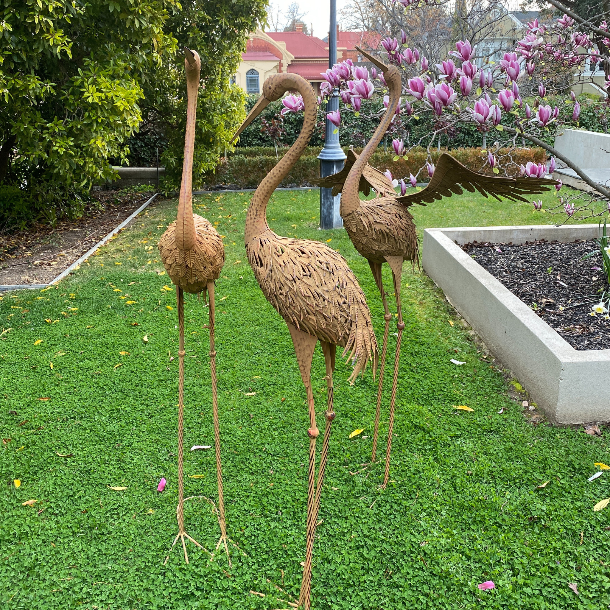 SET of 3, Outdoor Metal Cranes Head Up, Down & with Wings Garden Statue