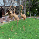 Crafted intricately with metal to come up three majestic pieces of differently-posed cranes for your garden