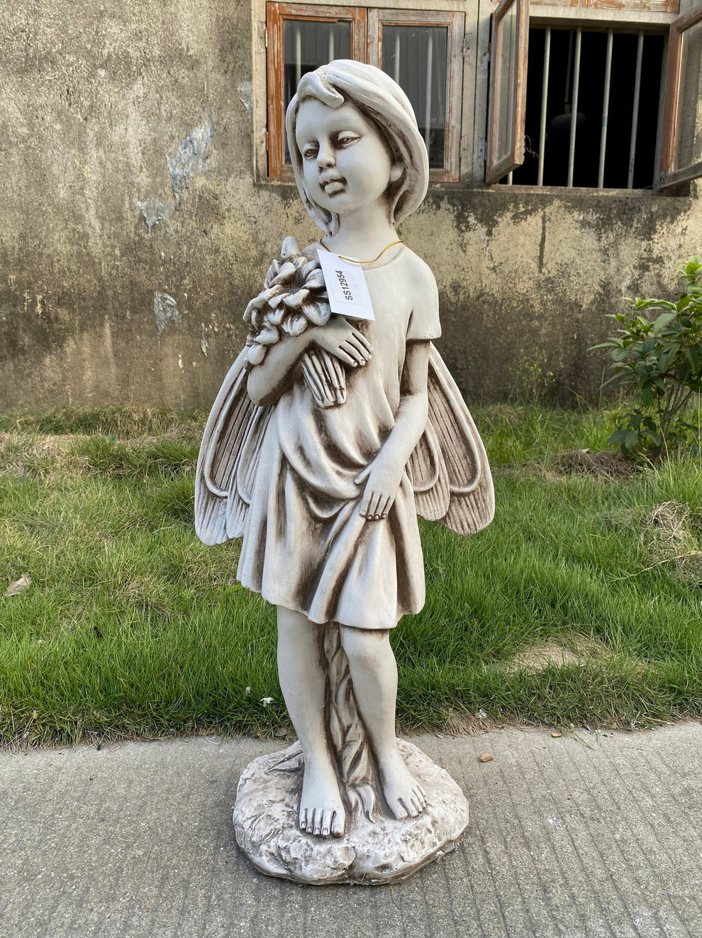 This delightful statue is finely detailed and adorable. Made from a light compound known as fibrestone this product offers all the properties you would expect from traditional stone products with the added advantages of being light weight, weather resistant and low maintenance. Place this lass among your pots, nestled in your garden or on your verandah.