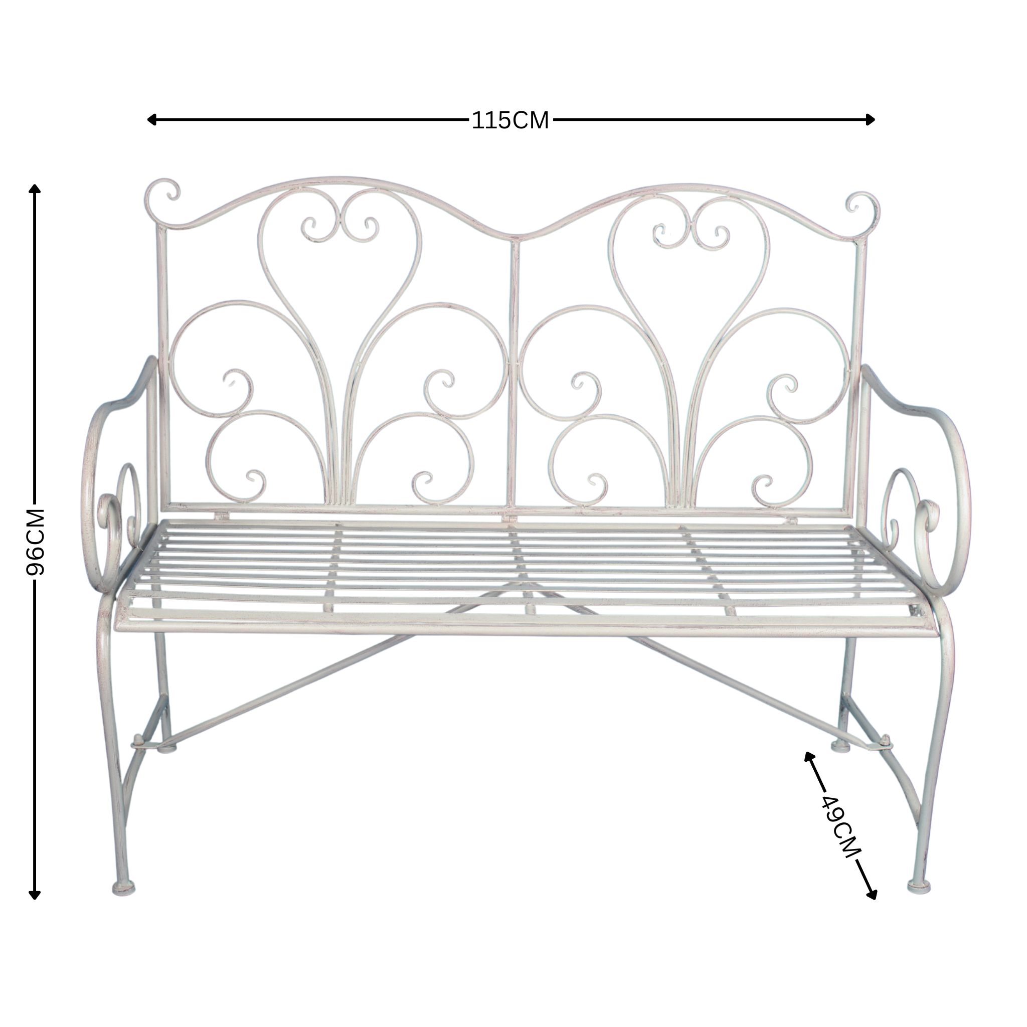 Garden Bench Adele Metal Cream Brush 114x48x95cm High