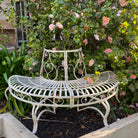 Half Tree Surround with Bench Seat, Distressed Antique White, Heavy Gauge Iron