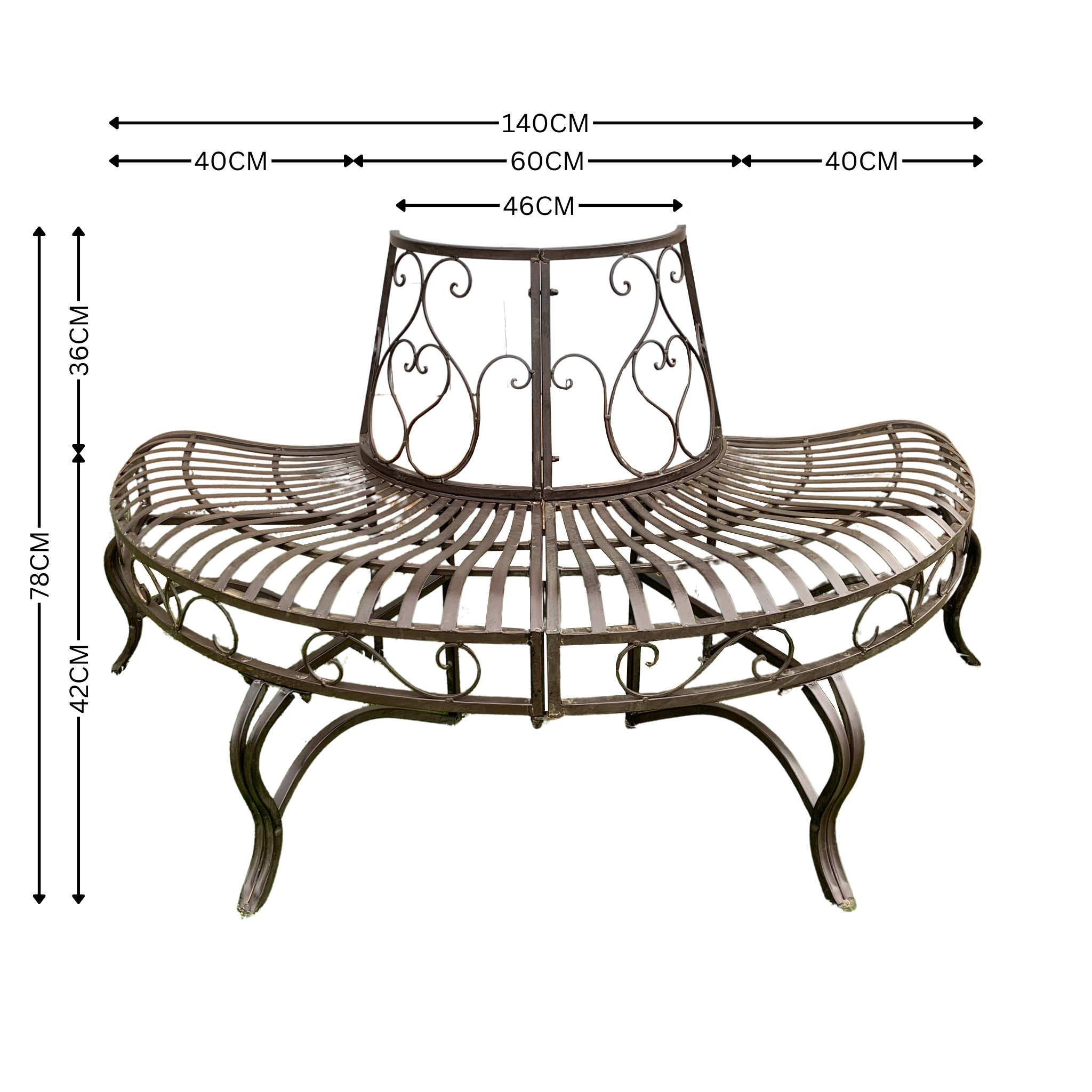 Add some elegance and classic charm with this beautiful half tree surround. This surround is perfect against a wall, around a tree or even double them to make a complete circle for your beautiful specimen tree. This is a classic piece will suit any outdoor space with a distressed black/brown rust finish it will create a special place to relax.