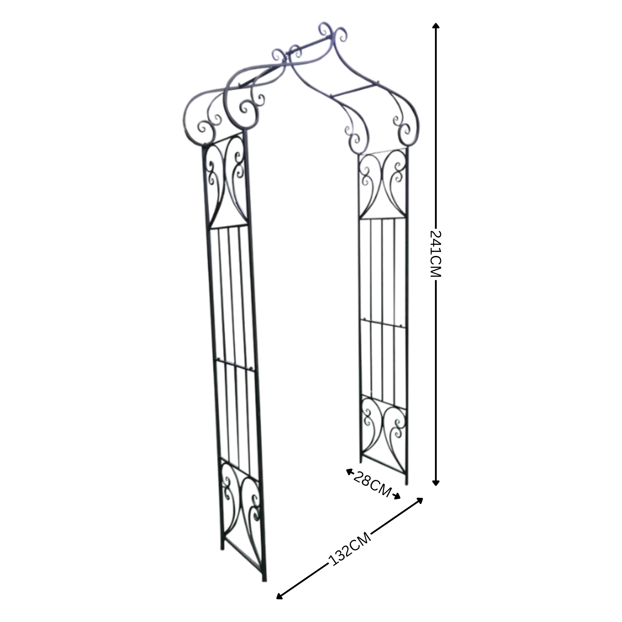 Metal garden arch.  This beautiful arch is a needed addition to any garden.   Take time to smell the climbing rose you have planted on its side with its lush blooms dripping down. or deciduous climber with  Autumn colour. Use this arch to transport you from one space to another, gracefully and beautifully.