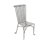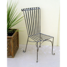 Wrought iron dining chair. This high back classically designed chair is suitable for use indoor and outdoor. With the rolled top and generous seating base this chair is styled with comfort and elegance in mind. The feet are a curved steel curl. This chair is a grand high backed piece.