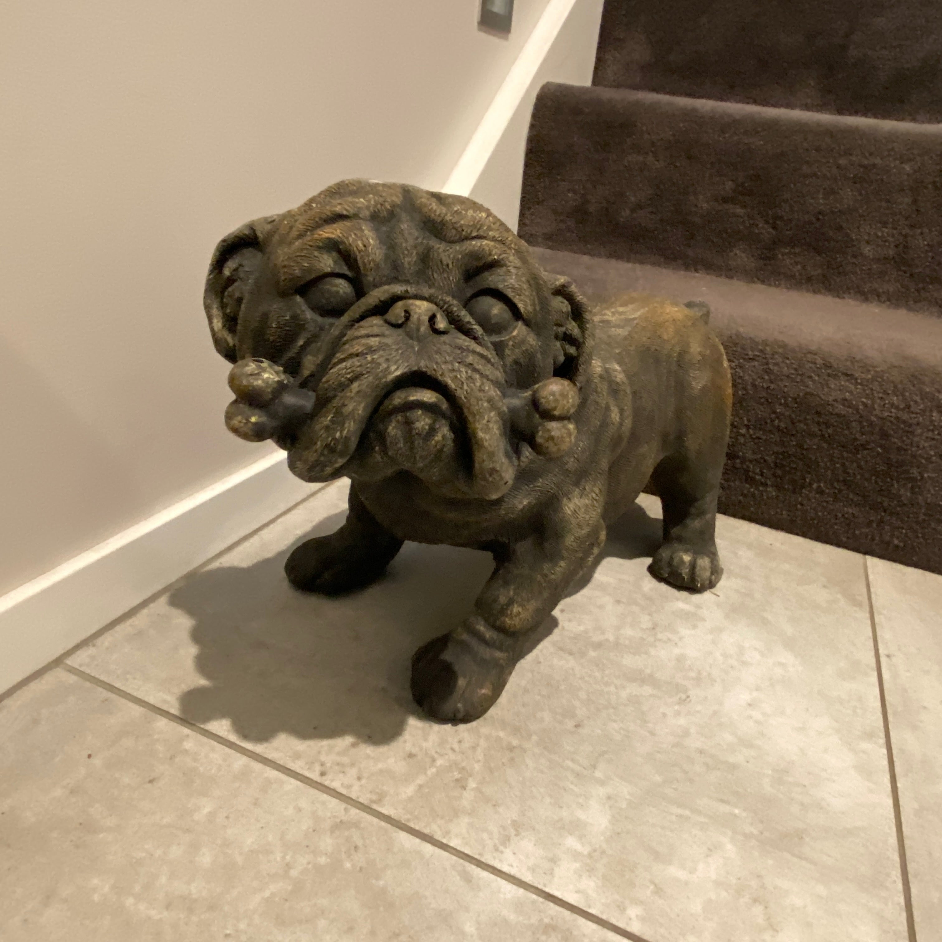 This fellow is made from a light compound known as fibrestone, this product offers all the properties you would expect from traditional stone products with the added advantages of being lightweight, weather resistant & low maintenance.  Place Archie in your garden, among your pots, on your door step to greet you, or of course inside your home.  He looks fantastic anywhere and you are sure to love him.